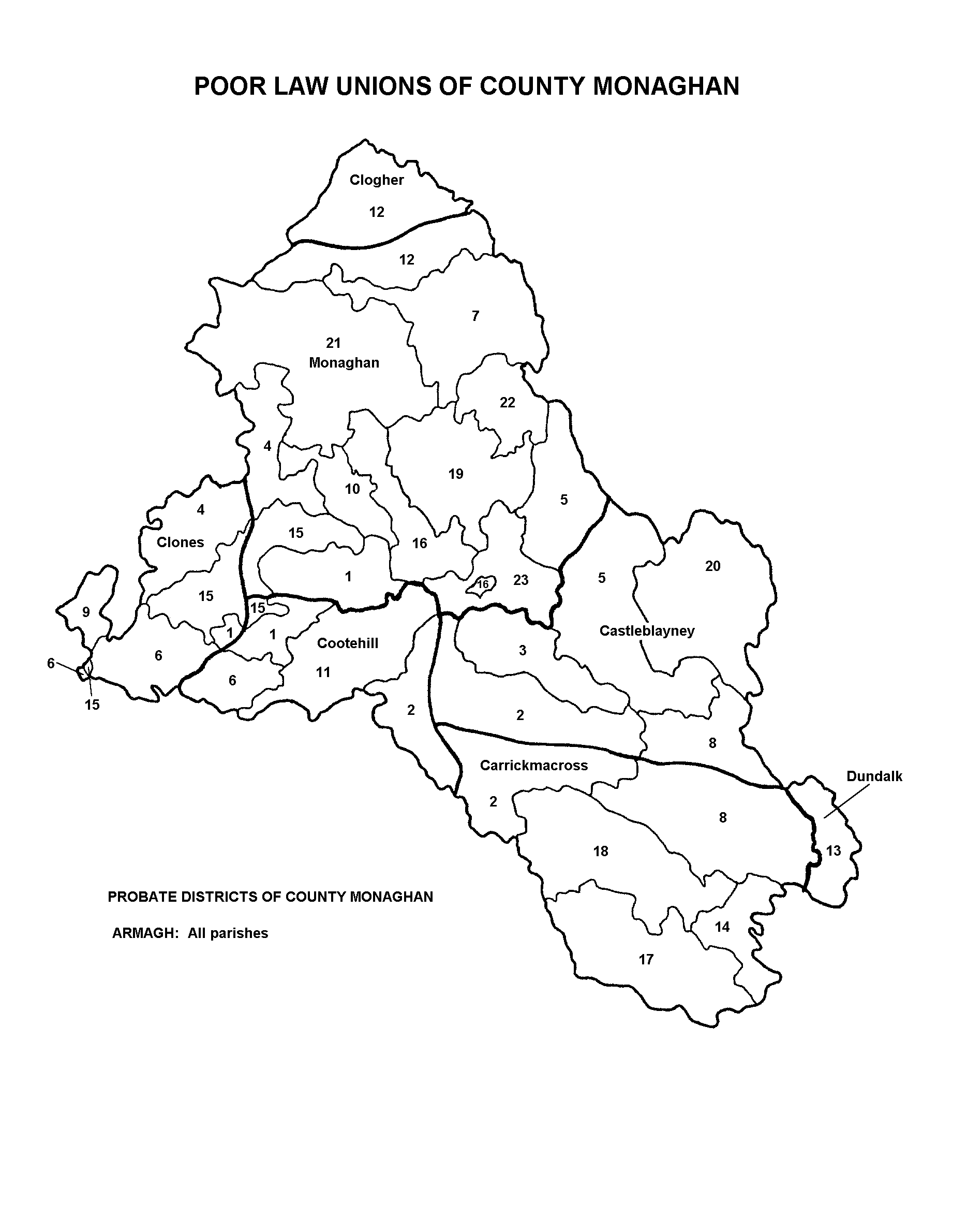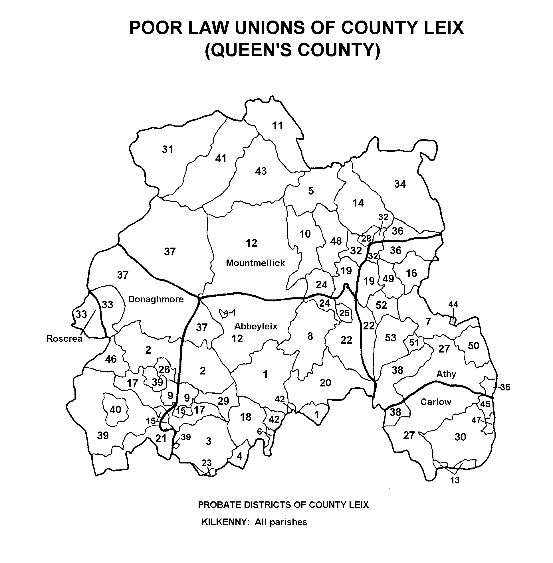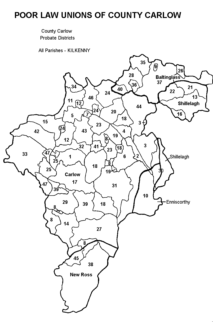 Maps of Ireland - This section contains maps of Ireland including the Parishes, Baronies and Poor Law Union for each County. These maps are valuable to the Irish genealogy researcher as they can help determine where in present day Ireland your ancestors were from and what the neighboring Parishes were if you need to do research in those records as well.